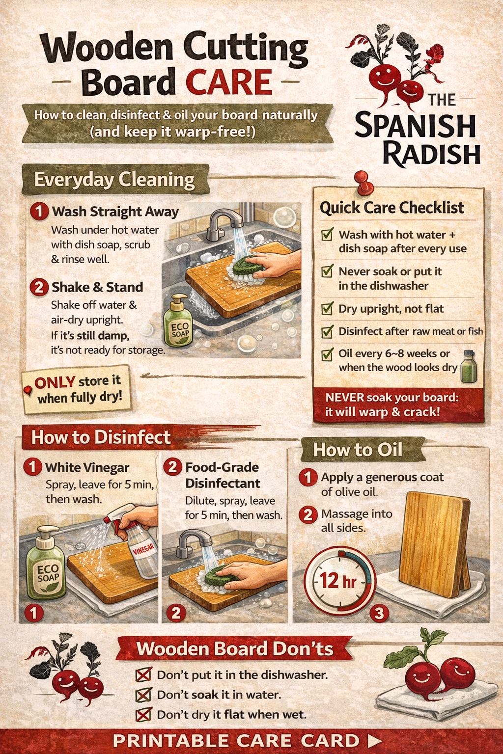 Home » Spanish Radish Blog » How to Clean, Disinfect and Oil a Wooden Cutting Board